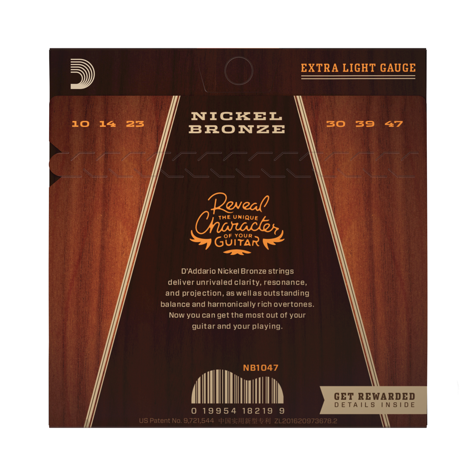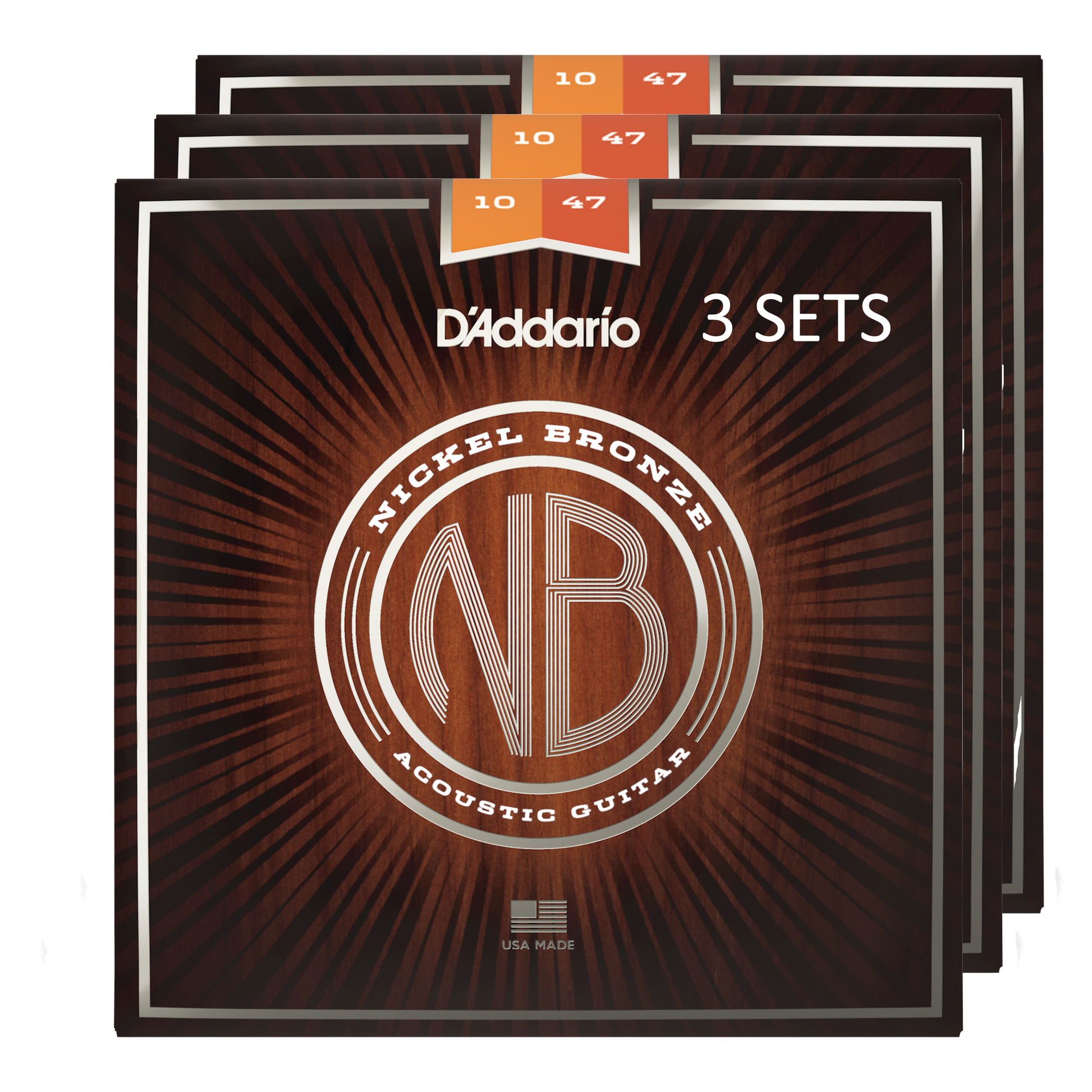 D'Addario NB1047-3P Nickel Bronze Acoustic Guitar Strings, Extra-Light 10-47 (3-SETS)