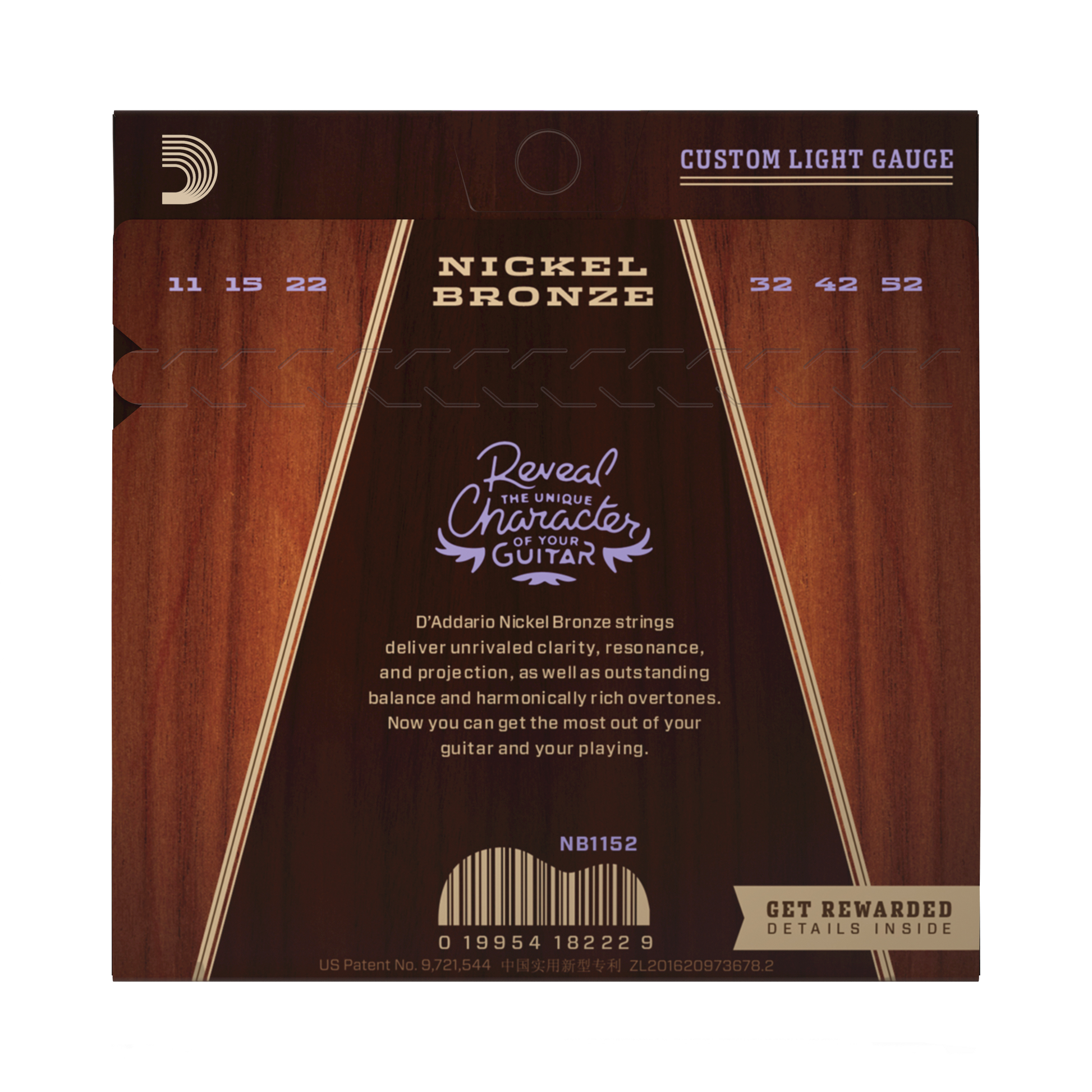 D'Addario NB1152-3P Nickel Bronze Acoustic Guitar Strings, Custom-Light 11-52 (3 SETS)