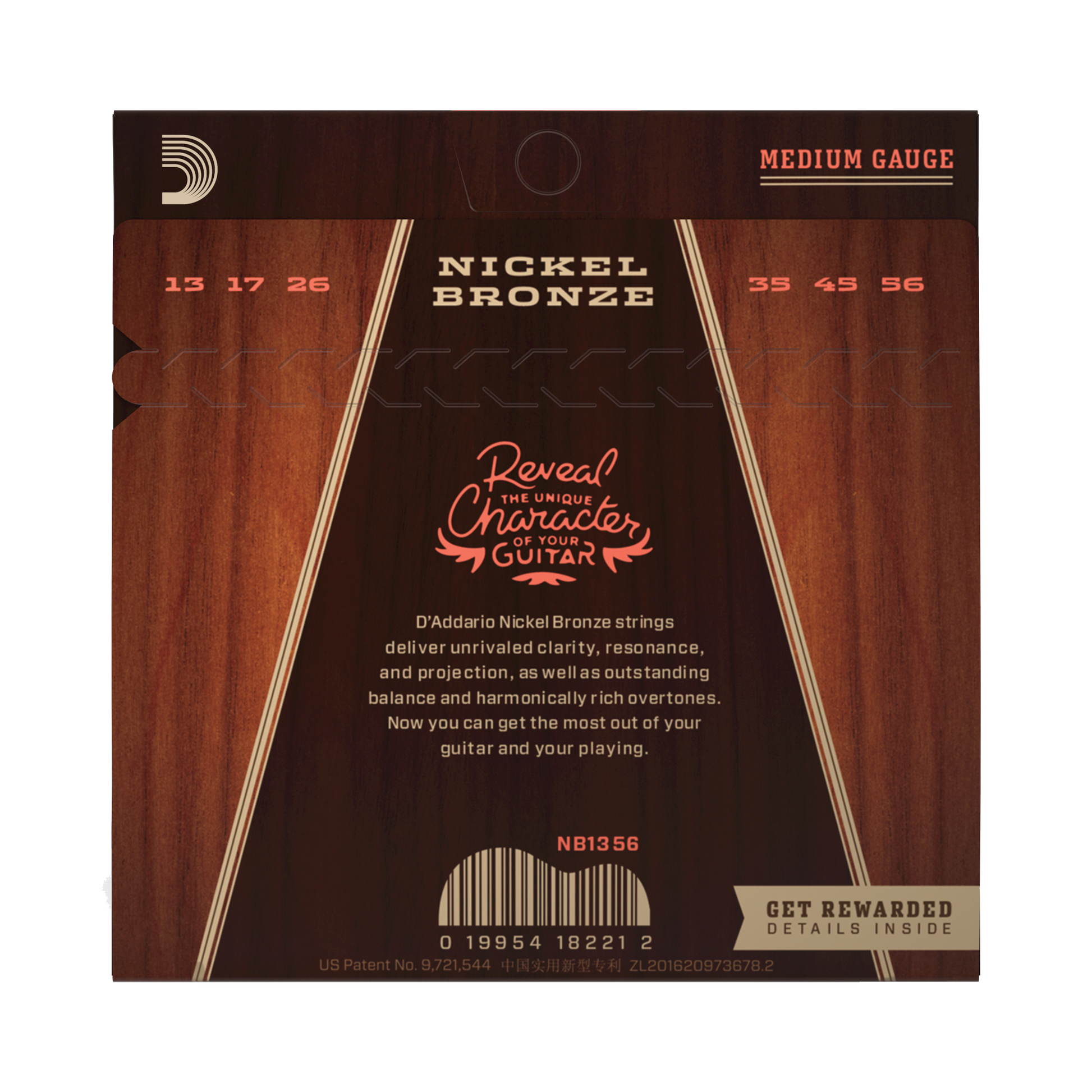 D'Addario NB1356-3P Nickel Bronze Acoustic Guitar Strings, Medium, 13-56 (3 SETS)