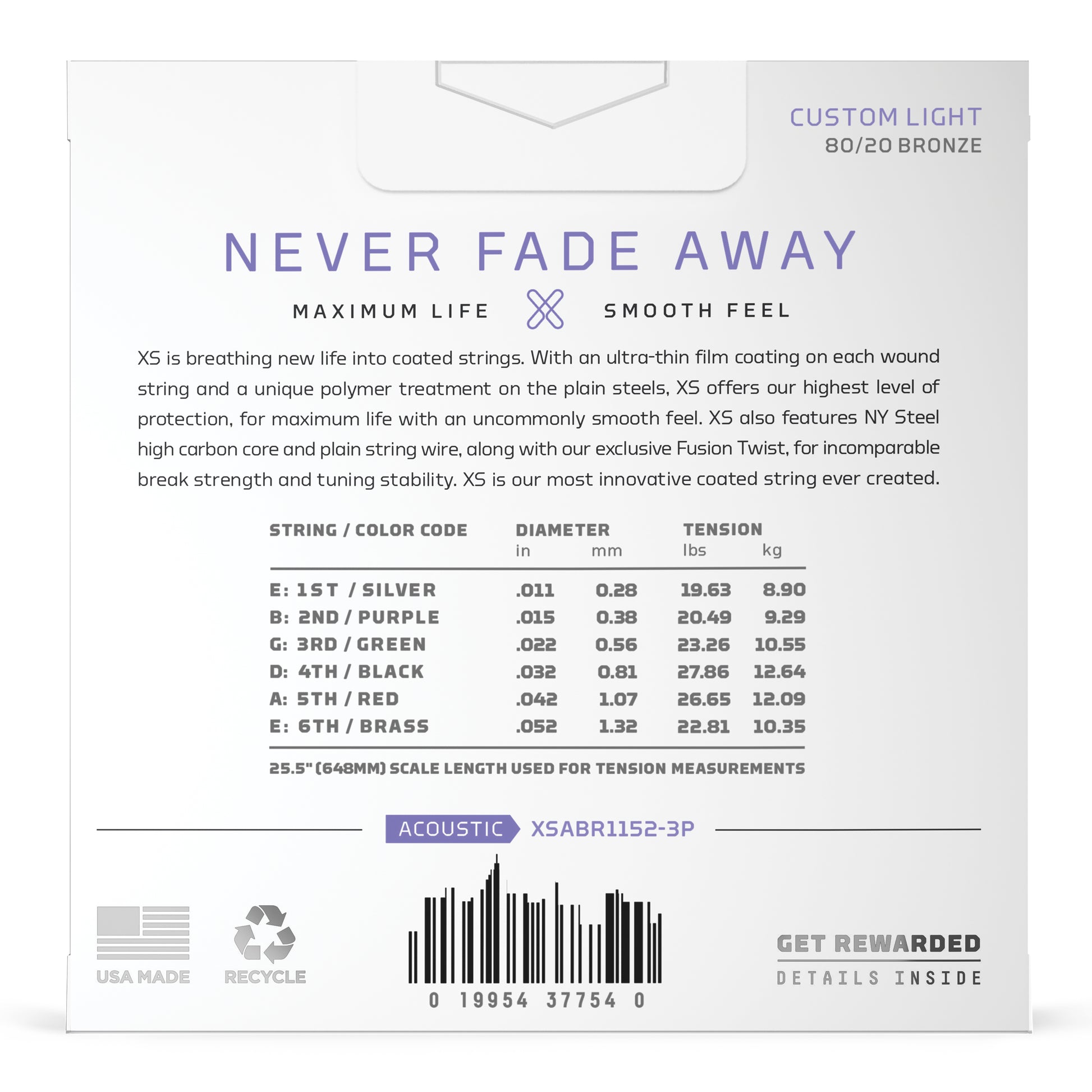 XS is breathing new life into coated strings. With its ultra-thin film coating on every wound string and unique polymer treatment on the plain steels, XS offers our highest level of protection for maximum life with an uncommonly smooth feel. XS also features NY Steel high carbon core and plain string wire, along with our exclusive Fusion Twist, for incomparable break strength and tuning stability. XS is the most innovative coated string ever created.