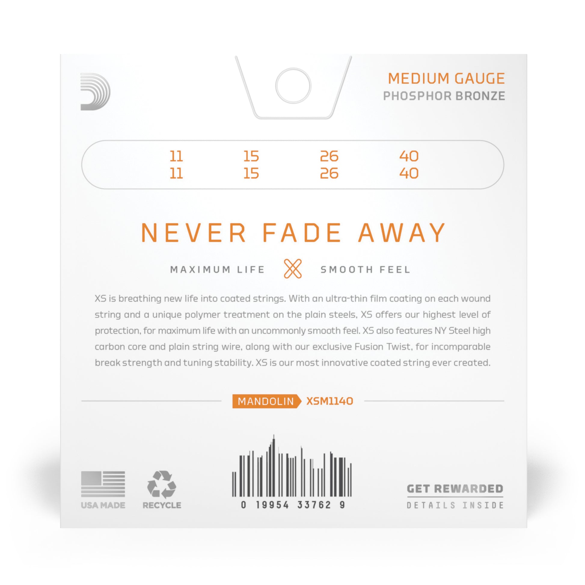 D'Addario XS Mandolin Phosphor Bronze combines our most popular acoustic alloy with our most advanced string coating technology, resulting in clear tone, smooth feel, and superior tuning stability — all with the longest possible string life. Available in Phosphor Bronze for Mandolin in medium gauge.