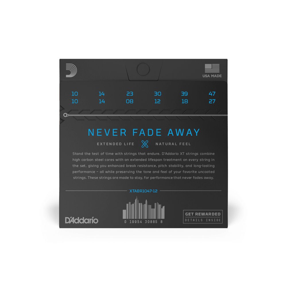 D'Addario XTABR1047-12-3P 10-47 Light 12-String, XT 80/20 Bronze Coated Acoustic Guitar Strings (3-SETS)